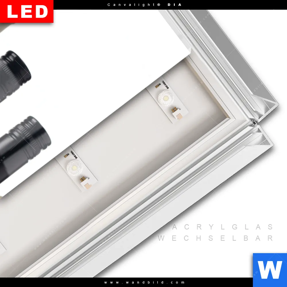 LED | Wechselrahmen-System | Acrylglas-Wechselbilder | DIA-Klapprahmen-Funktion