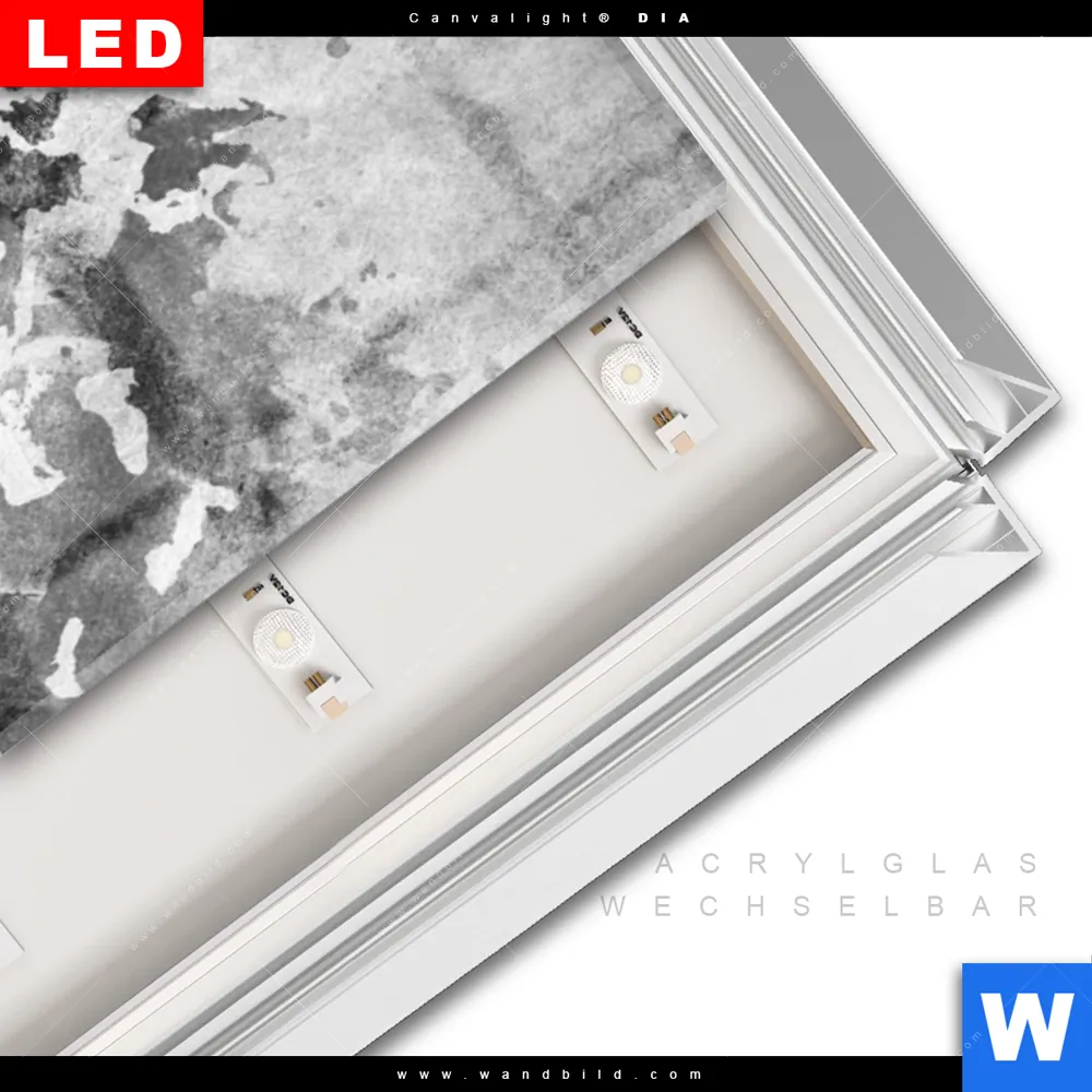 LED-Glasbild mit austauschbarem Acrylglas-Druck (Wechselbild)