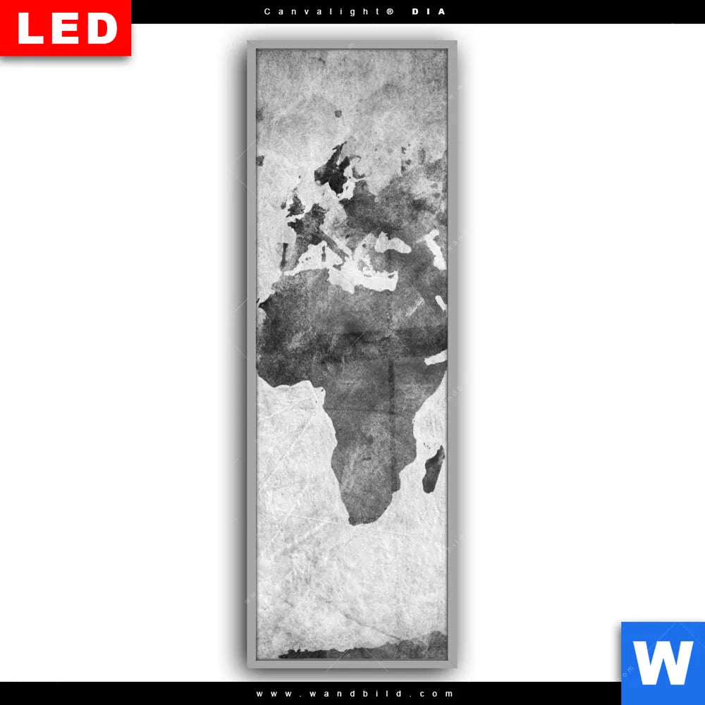 Canvalight® DIA Leuchtbild | Weltkarte Grautöne | Schmal