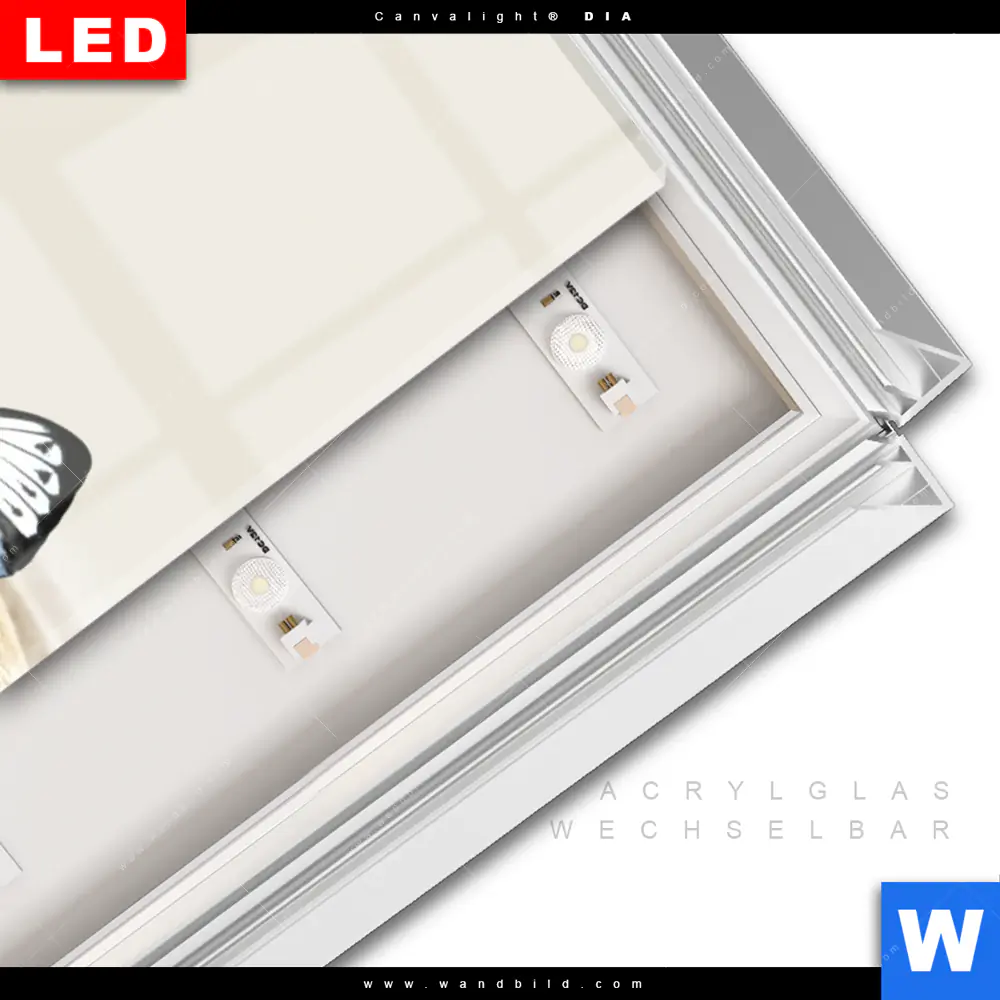 LED-Glasbild mit austauschbarem Acrylglas-Druck (Wechselbild)