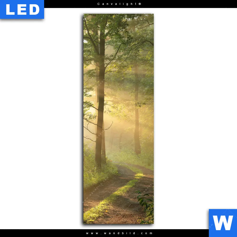 Canvalight® Leuchtbild | Morgenspaziergang im nebeligem Wald | Schmal