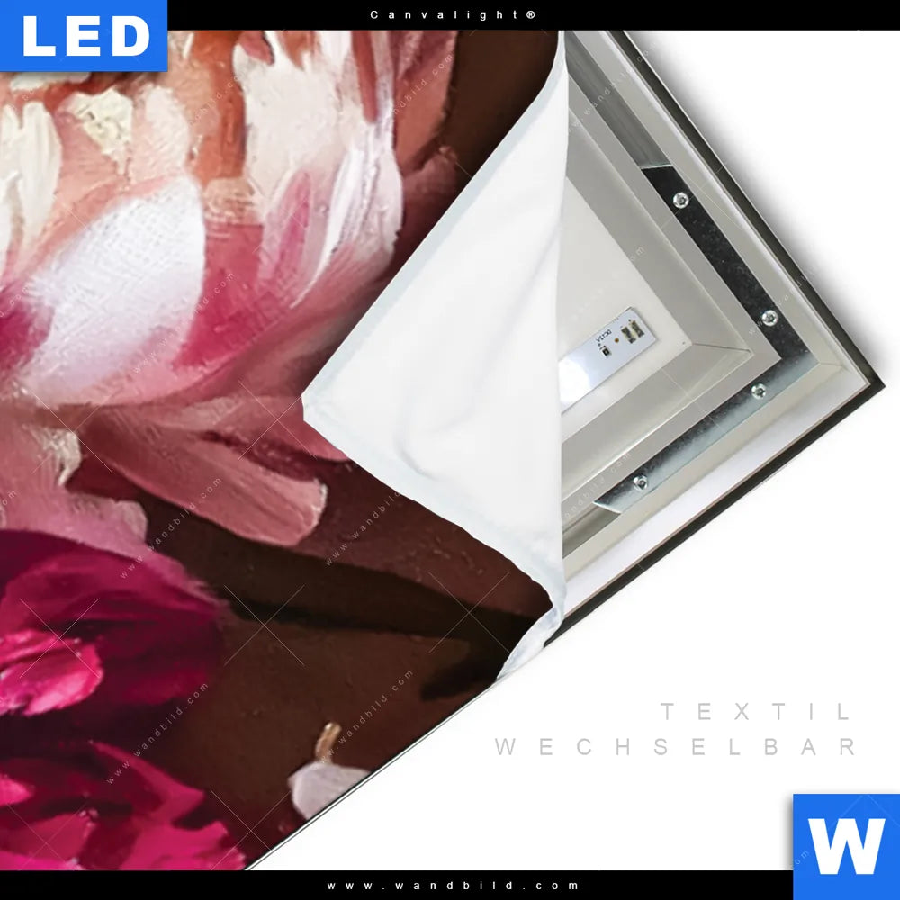 LED-Textilrahmen-Bild mit austauschbarem Blumen - Botanik Textil-Druck (Wechselbild)