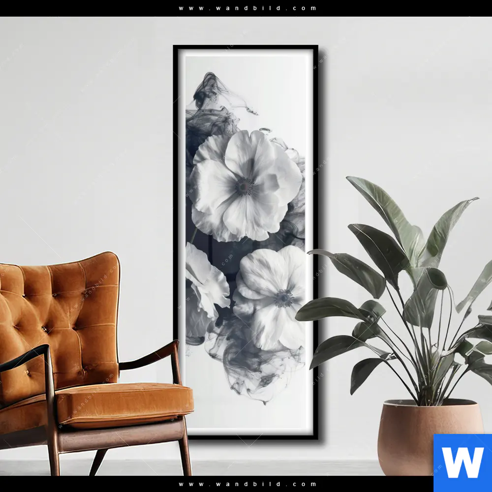 Poster | Blumen im schwarzen Farbnebel | Schmal