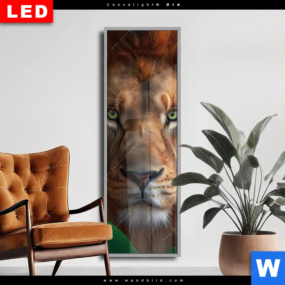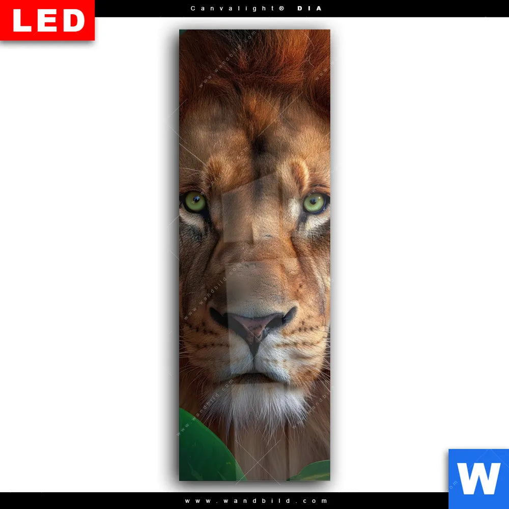 Wechselmotiv Acrylglas Canvalight® DIA | Löwe im grünen Regenwald | Schmal