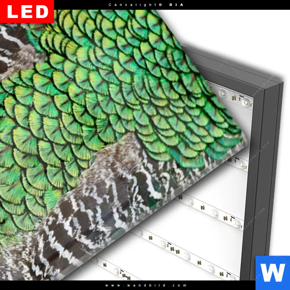 Wechselmotiv Acrylglas Canvalight® DIA | Pfaufedern | Schmal