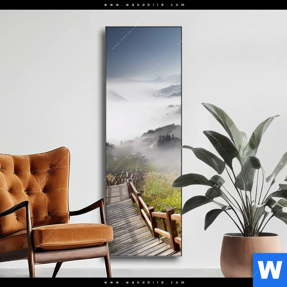 Wechselmotiv | Holztreppe auf Berg mit Wolken | Schmal