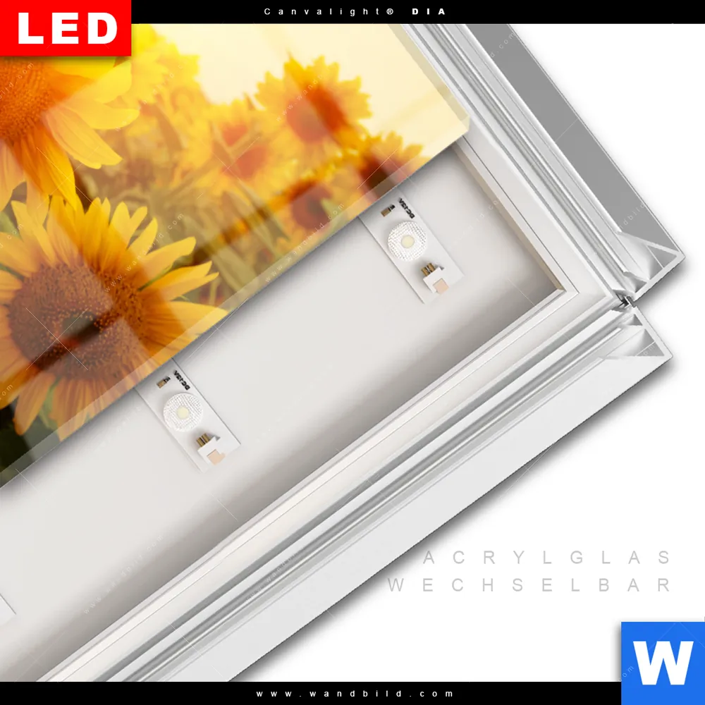 LED | Wechselrahmen-System | Acrylglas-Wechselbilder | DIA-Klapprahmen-Funktion