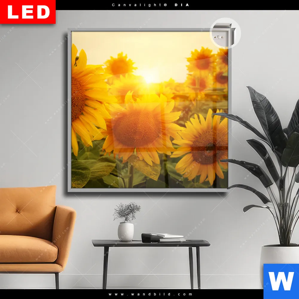 Canvalight® DIA Leuchtbild | Sonnenblumen im Abendlicht | Quadrat