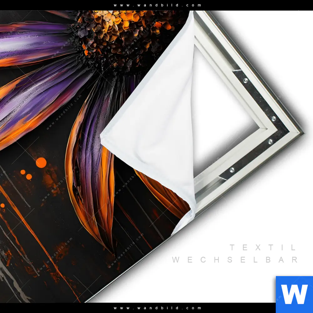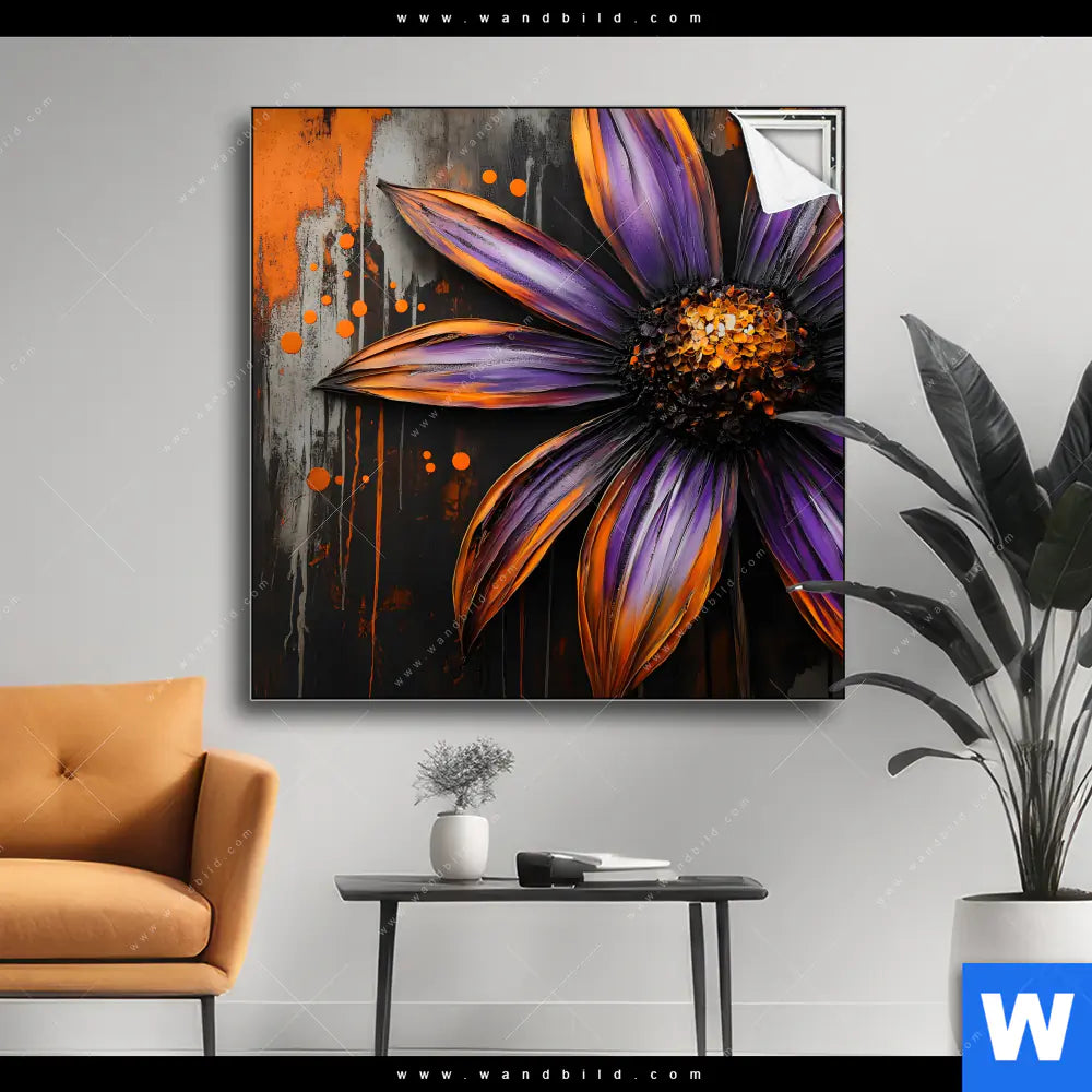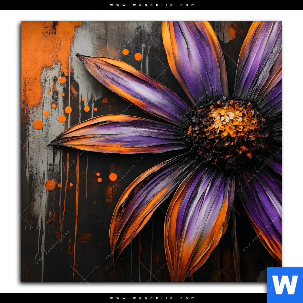 Spannbild | Abstrakte Blume in Orange & Lila | Quadrat
