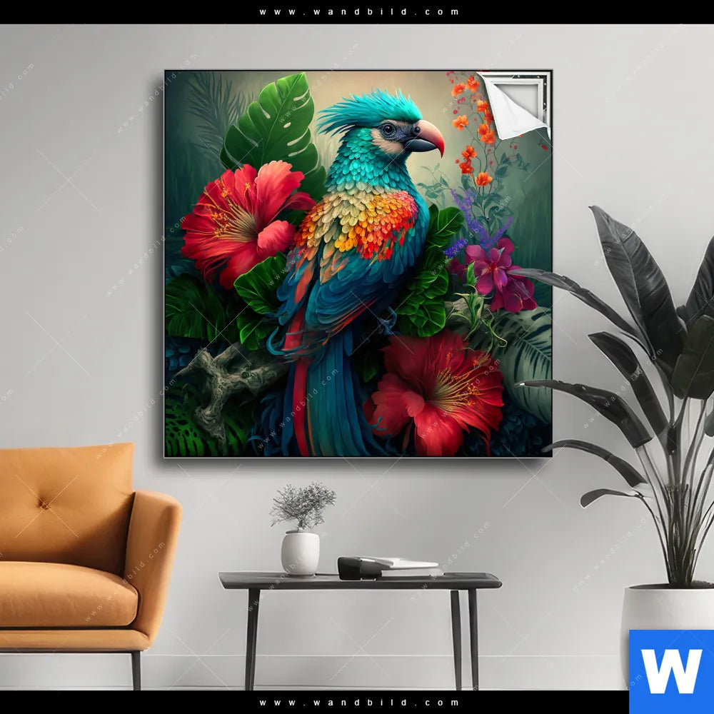 Spannbild | Papagei und tropischer Hibiskus | Quadrat
