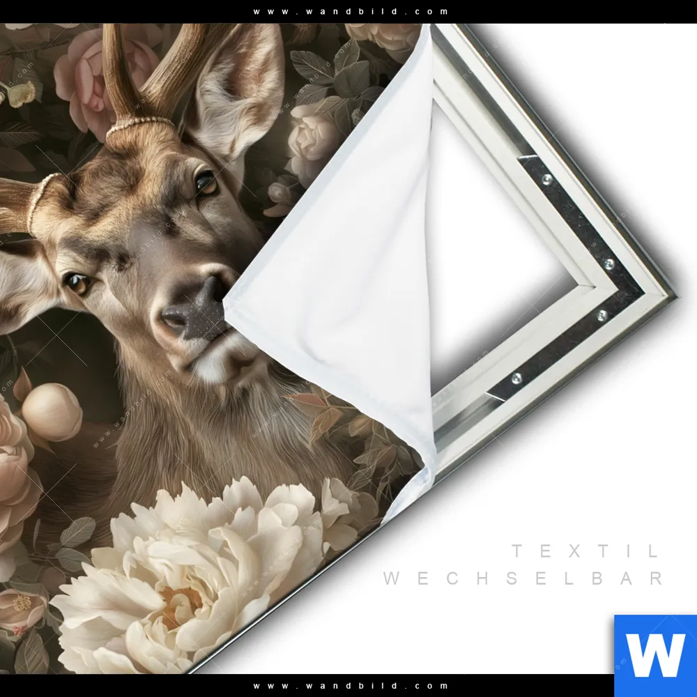 Spannbild | Romantischer Hirsch mit Blumen | Quadrat