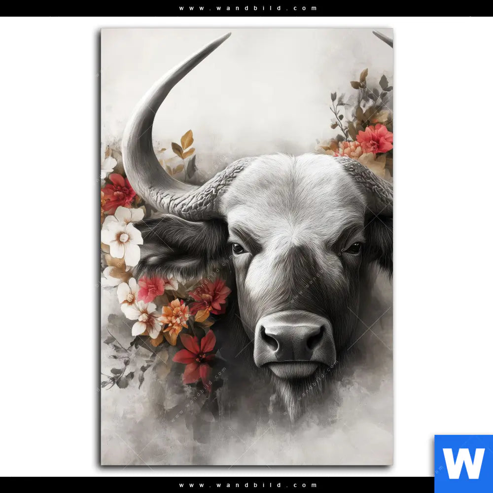 Spannbild | Starker Bulle mit Blumen | Hochformat