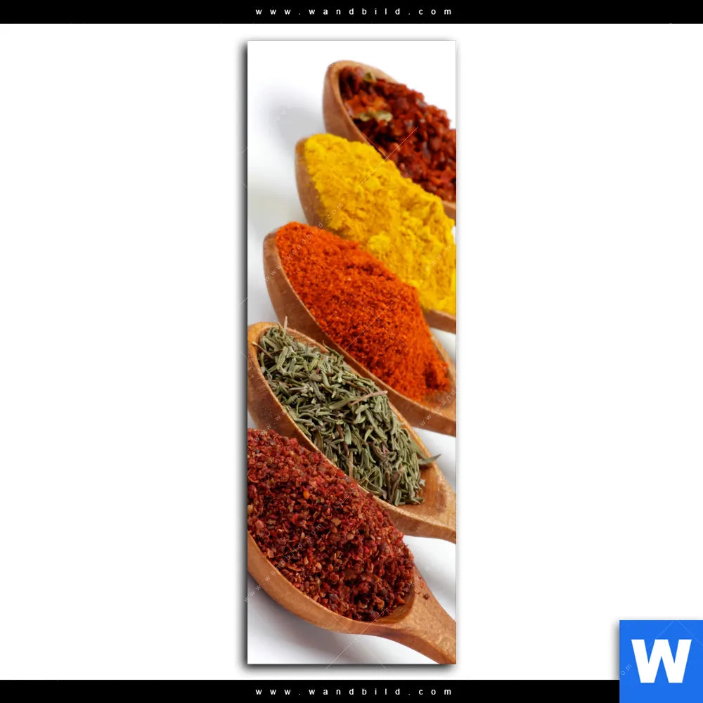 Spannbild | Farbige Gewürze auf Holzlöffel | Schmal
