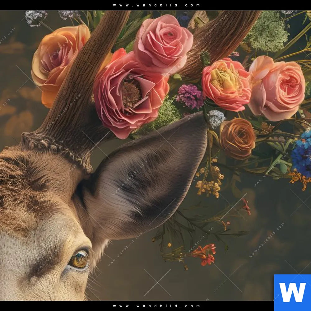 Spannbild | Hirsch mit floralem Geweih | Quadrat