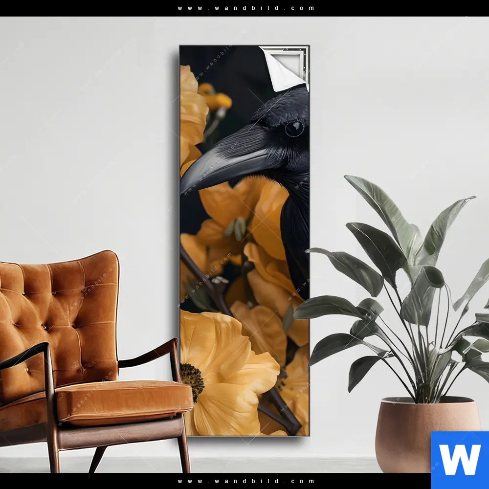 Spannbild | Naturbild - Rabe & Blüten | Schmal