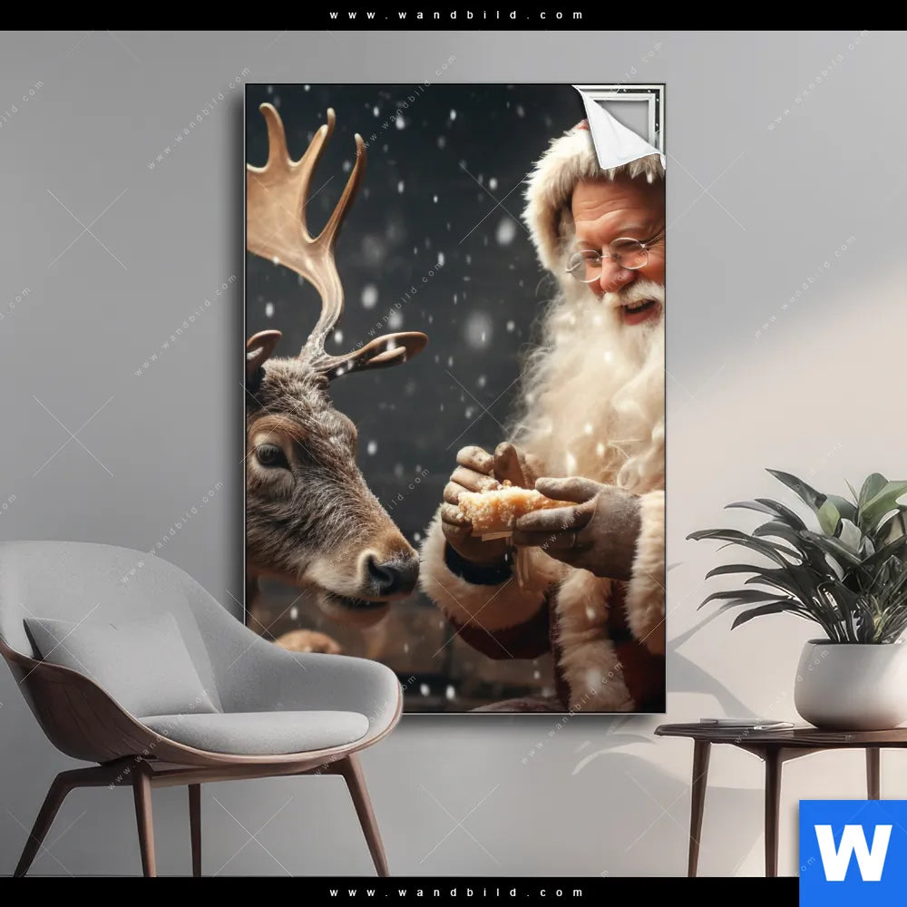 Spannbild | Weihnachtsmann füttert Rentier | Hochformat