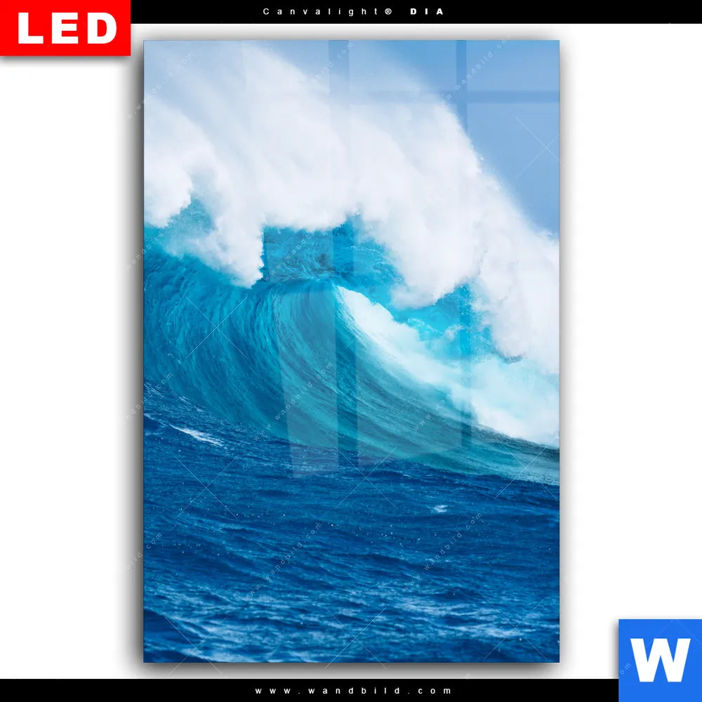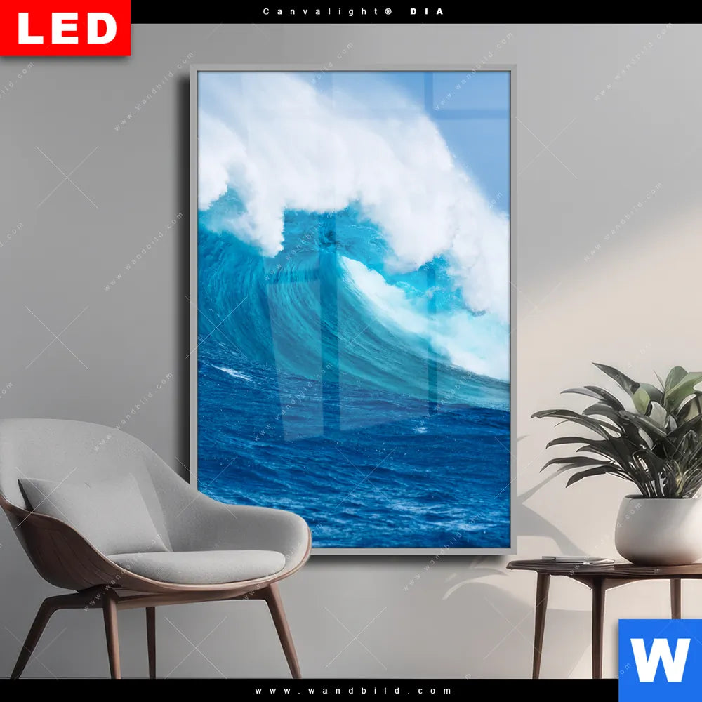Wechselmotiv Acrylglas Canvalight® DIA | Blaue Welle im Meer | Hochformat