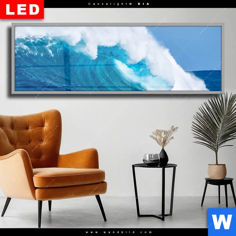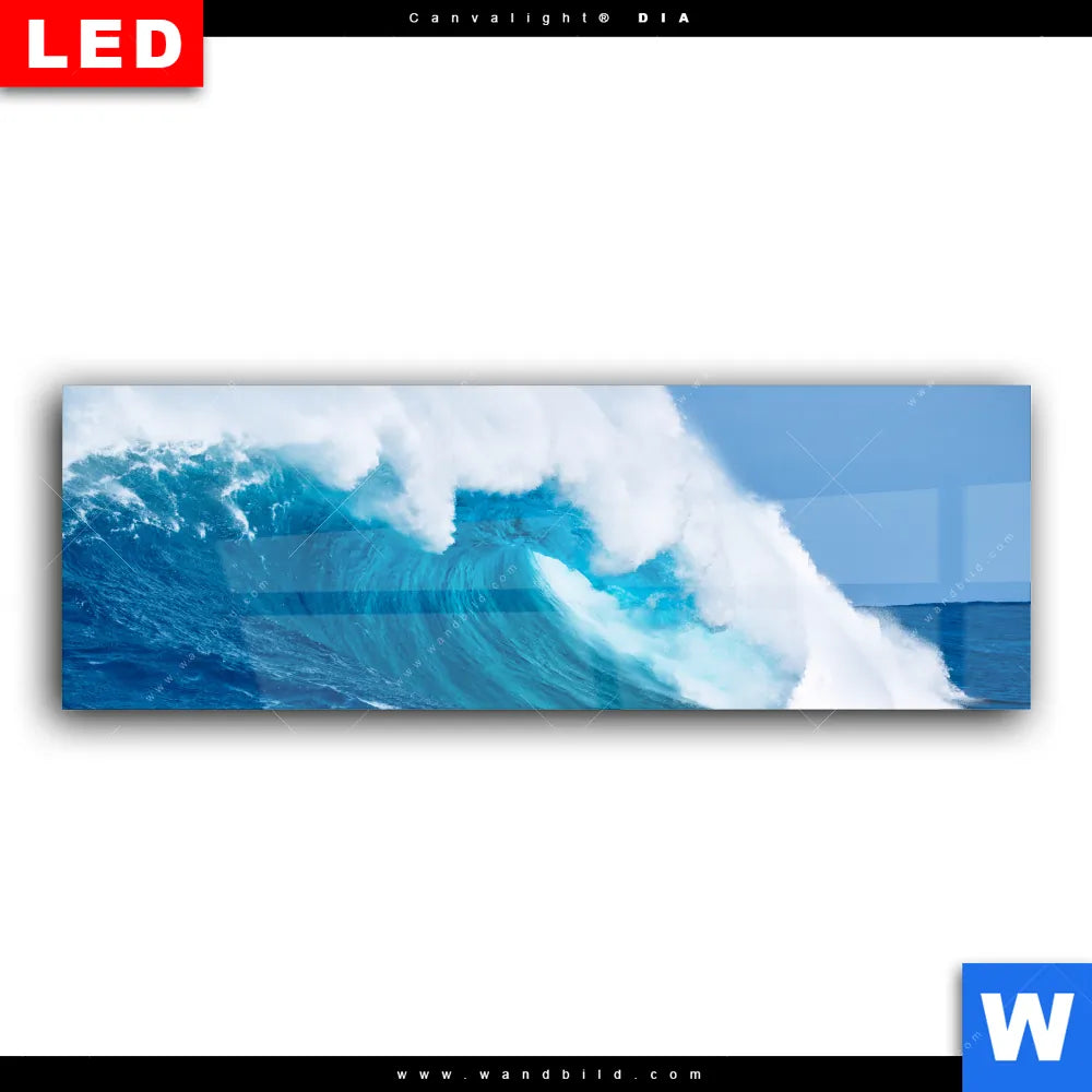 Wechselmotiv Acrylglas Canvalight® DIA | Blaue Welle im Meer | Panorama