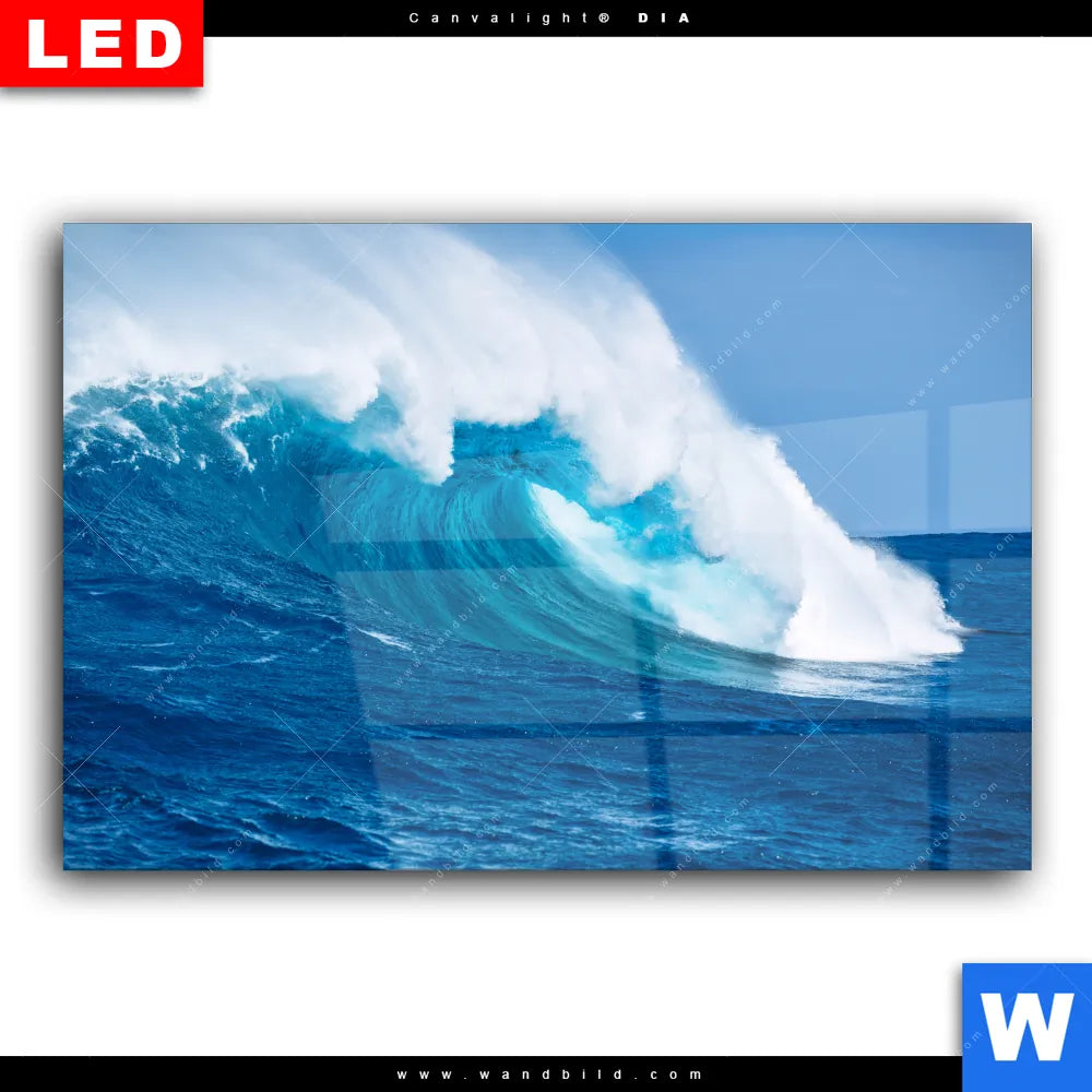 Wechselmotiv Acrylglas Canvalight® DIA | Blaue Welle im Meer | Querformat
