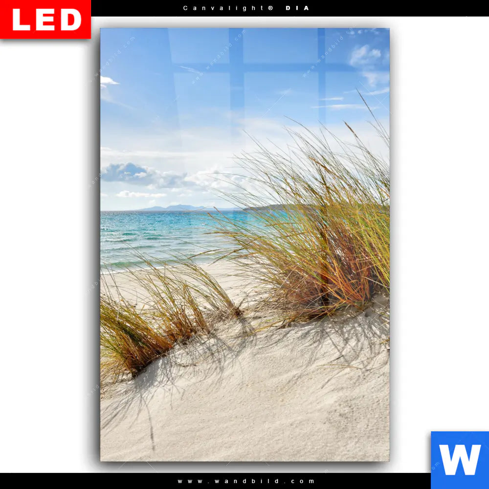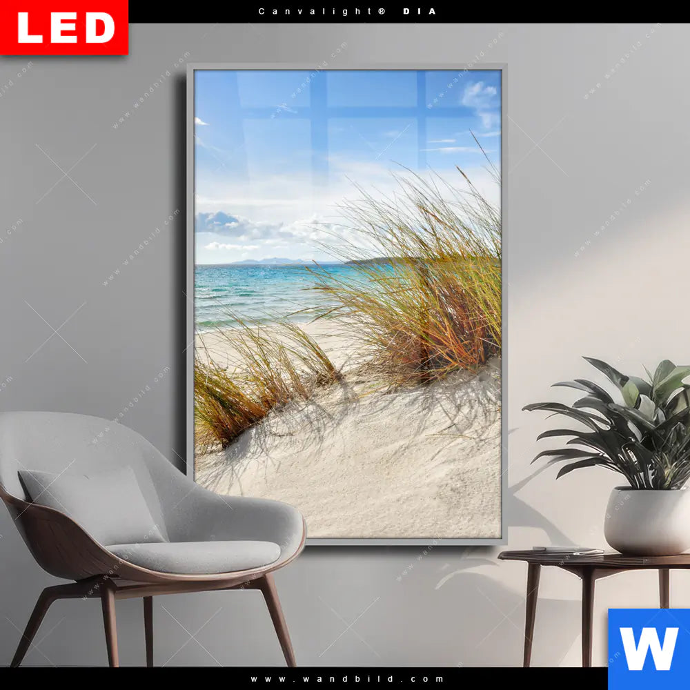 Wechselmotiv Acrylglas Canvalight® DIA | Dünenlandschaft mit Meerblick | Hochformat