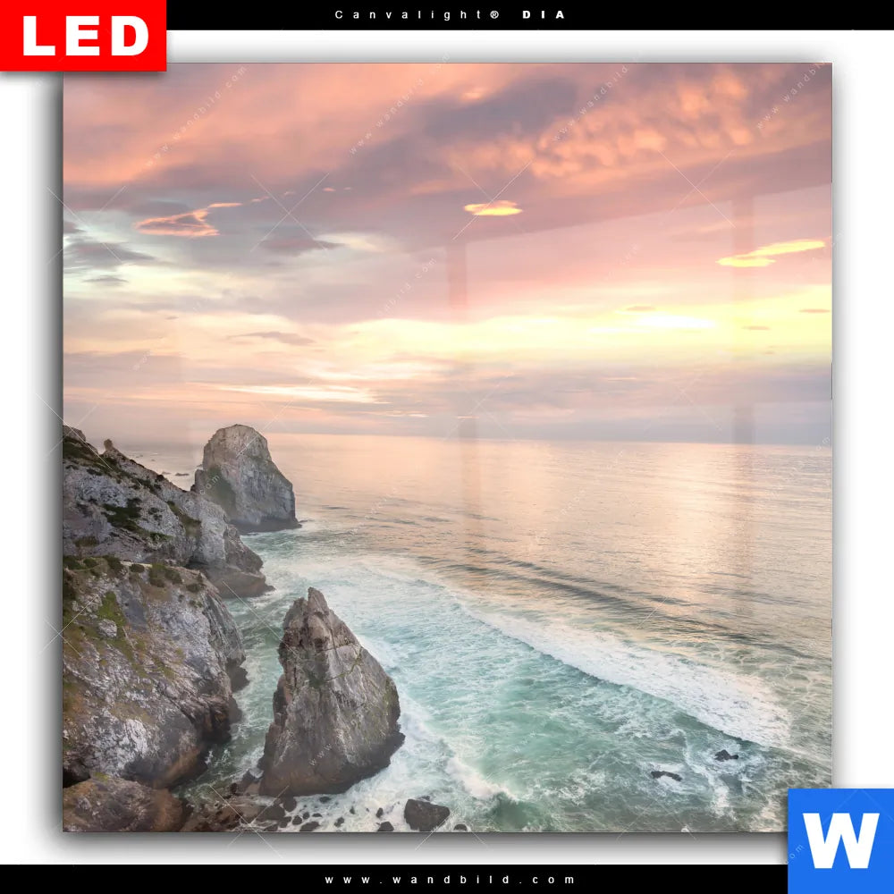 Wechselmotiv Acrylglas Canvalight® DIA | Felsen am Meer | Quadrat