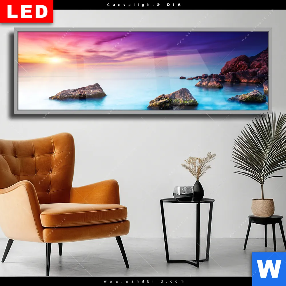 Wechselmotiv Acrylglas Canvalight® DIA | Felsen im Meer | Panorama