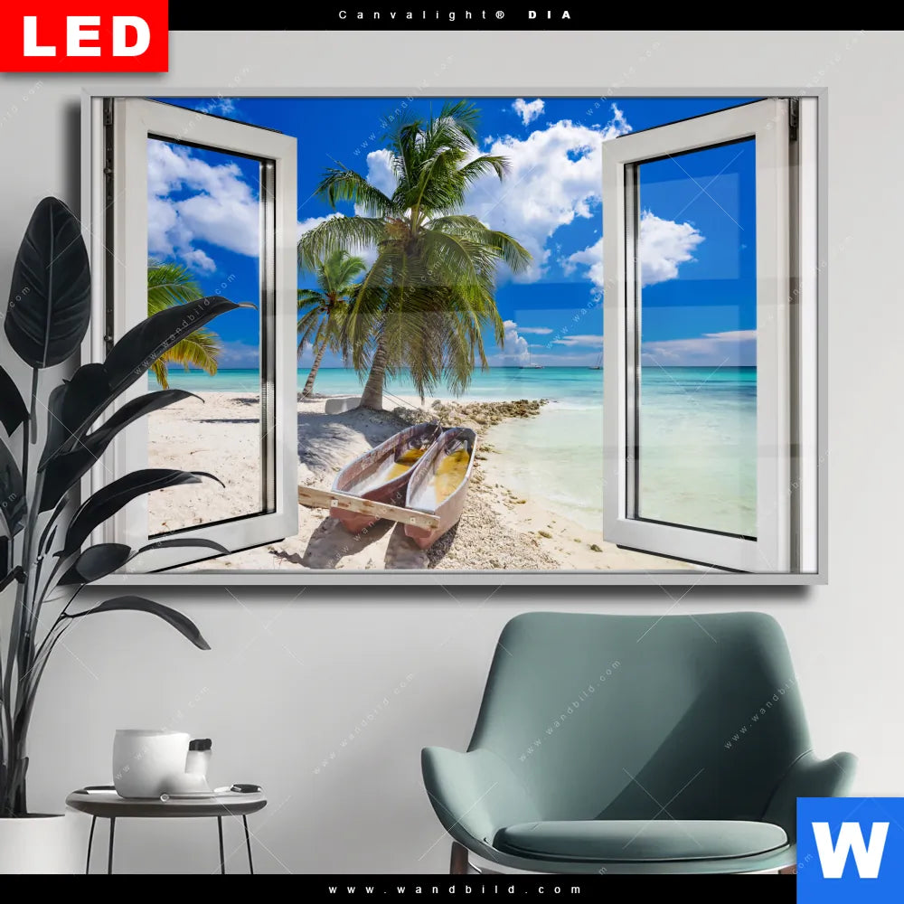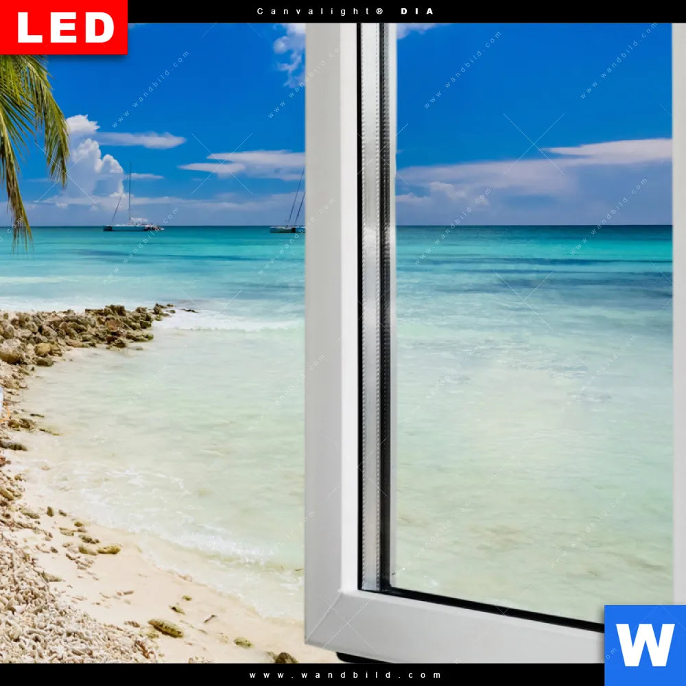 Wechselmotiv Acrylglas Canvalight® DIA | Fensterblick Südsee Boote | Querformat