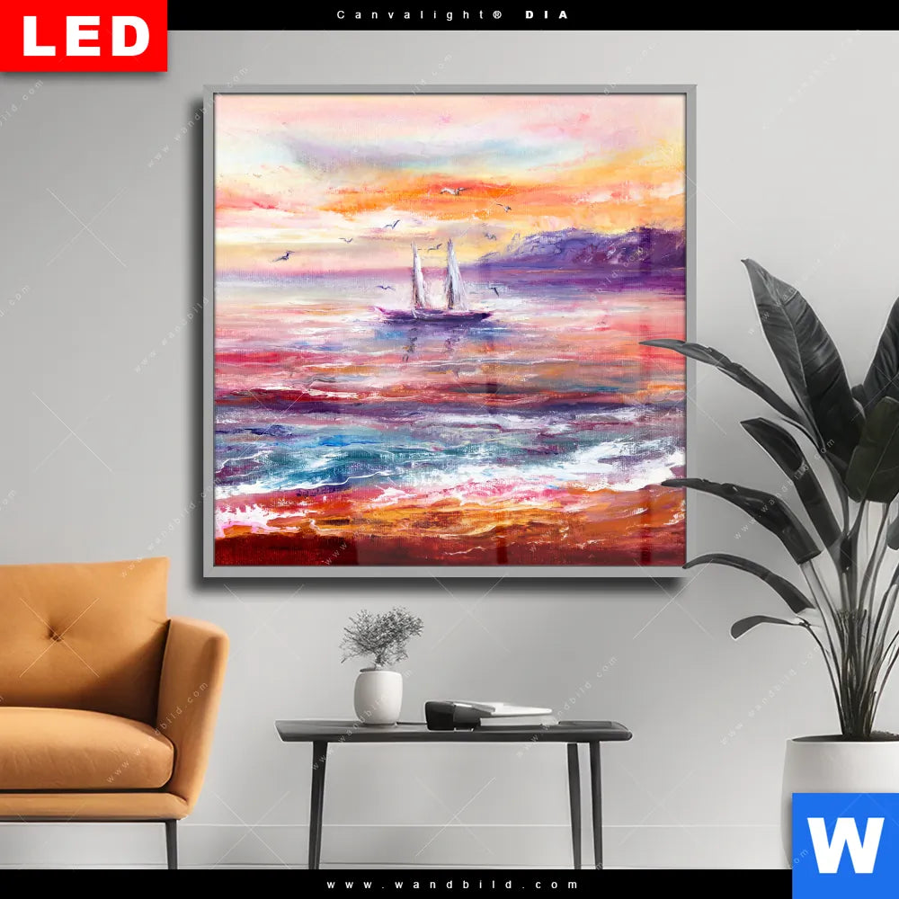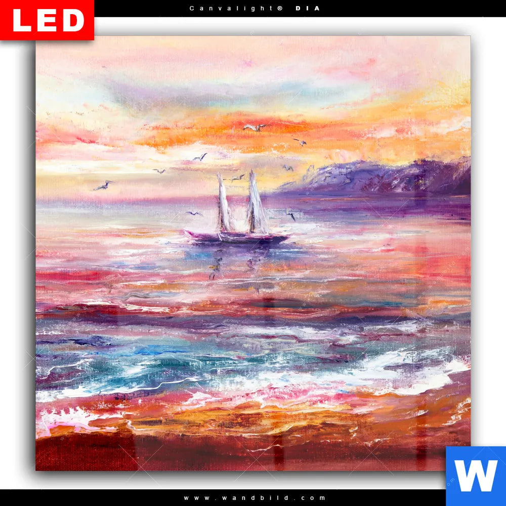 Wechselmotiv Acrylglas Canvalight® DIA | Gemälde mit Boot im Sonnenuntergang | Quadrat