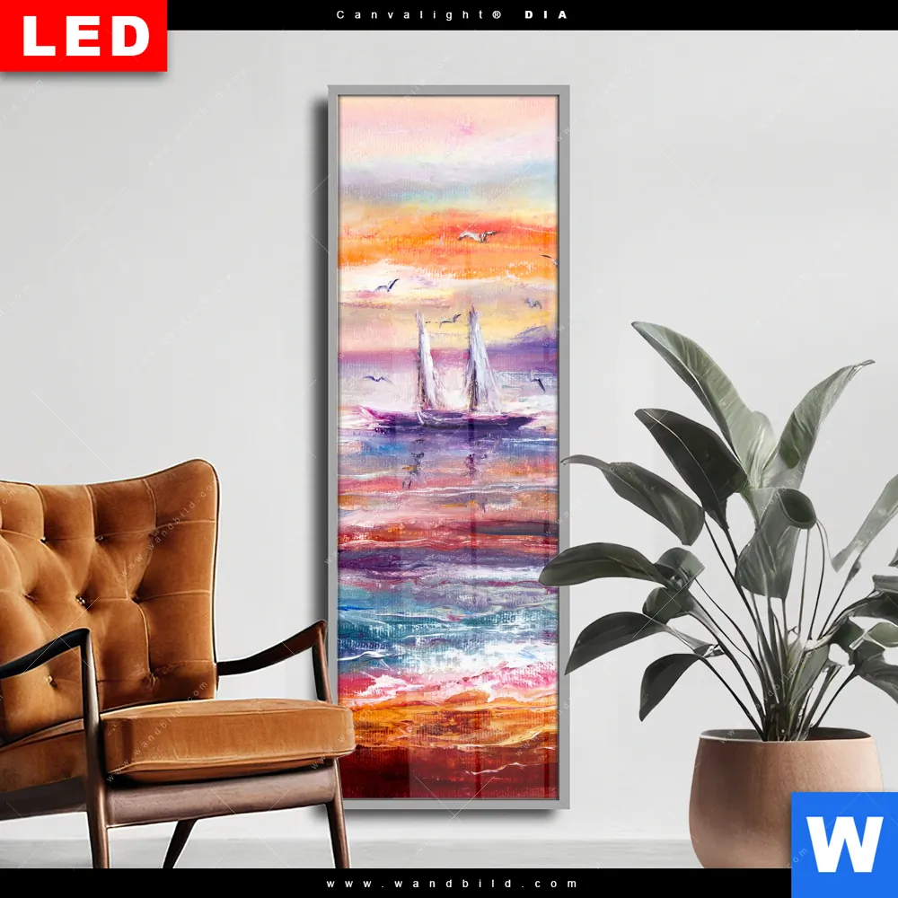 Wechselmotiv Acrylglas Canvalight® DIA | Gemälde mit Boot im Sonnenuntergang | Schmal