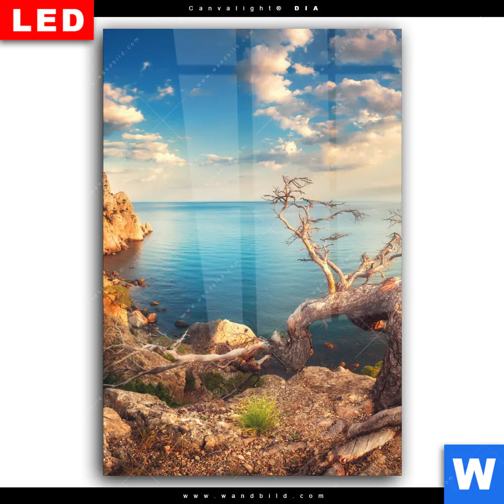 Wechselmotiv Acrylglas Canvalight® DIA | Küstenlandschaft mit altem Baum | Hochformat