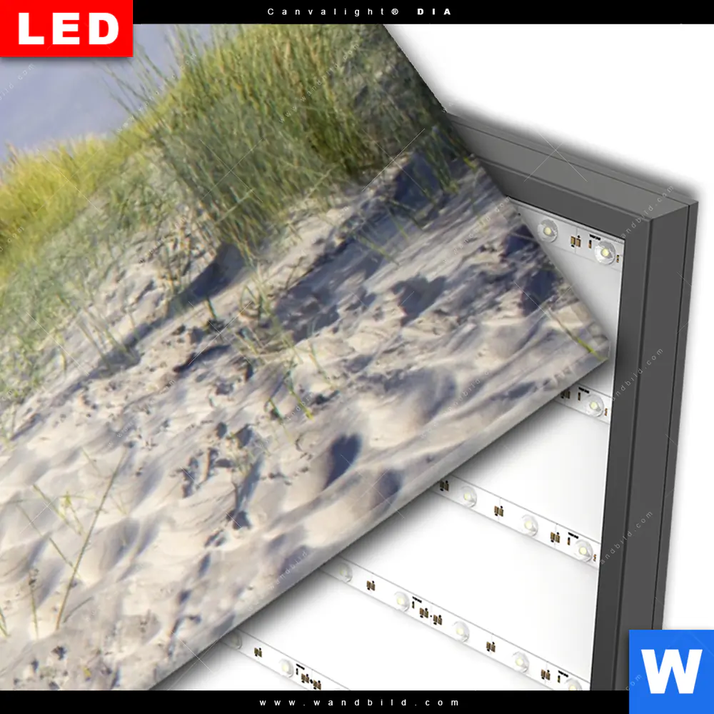 Wechselmotiv Acrylglas Canvalight® DIA | Küstenwanderung durch Sanddünen | Panorama
