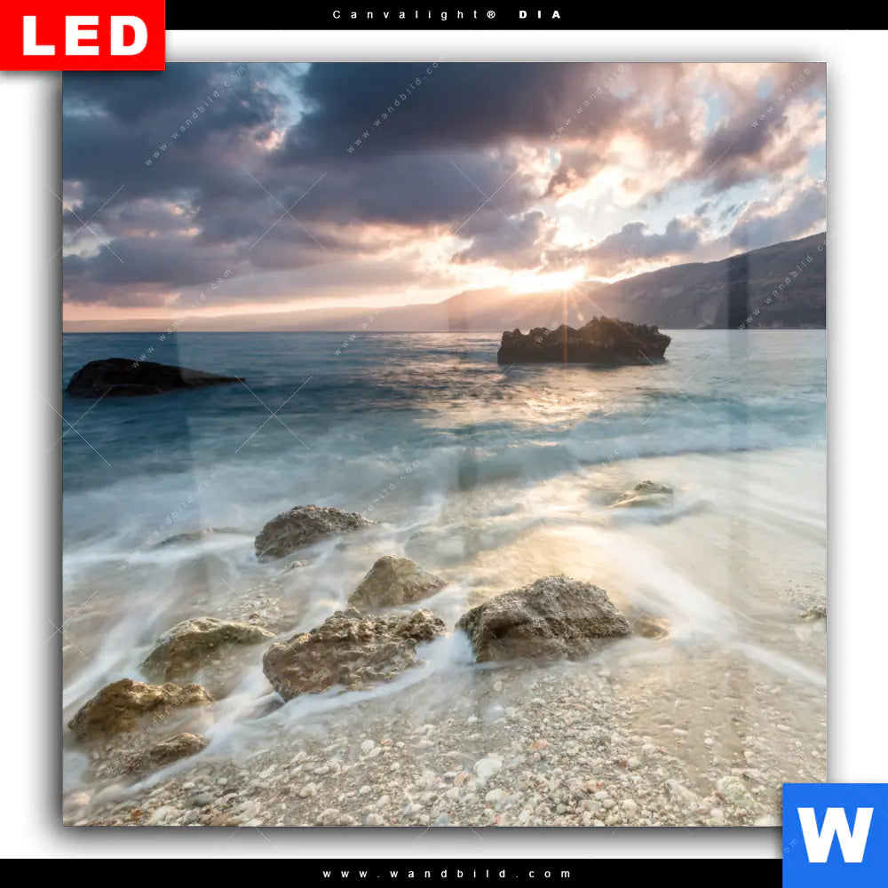 Wechselmotiv Acrylglas Canvalight® DIA | Meeresrauschen bei Sonnenuntergang | Quadrat