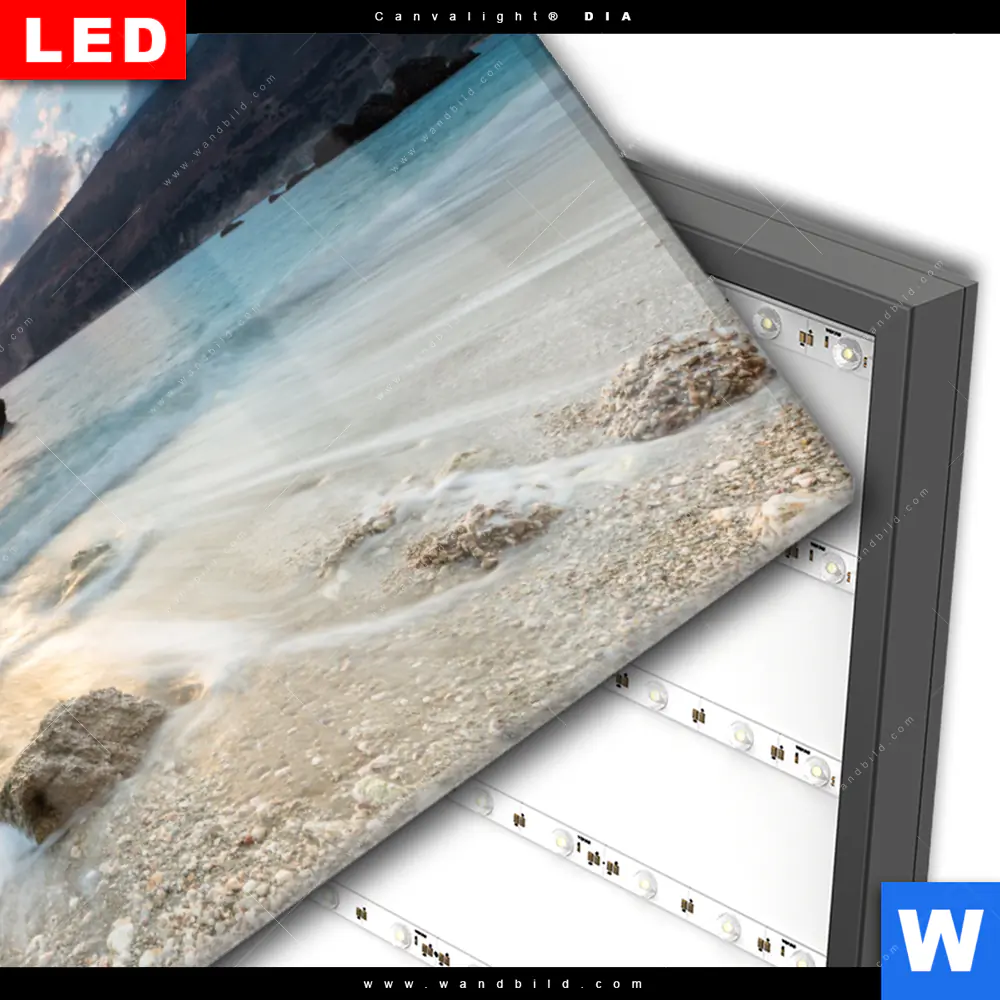 BEACHTE: Du solltest bereits ein Canvalight® DIA Leuchtbild mit austauschbarem Acrylglas-Motiv besitzen! Im Lieferumfang ist nur ein Wechsel-Acrylglas-Druck ohne Leuchtrahmen enthalten. Der Abdeckwinkel im Frontbereich des LED Bildes deckt umlaufend ca. 19 mm des Motives ab. Bei eigenen Motiven bitte darauf achten, wichtige Elemente in ausreichender Entfernung vom Rand zu platzieren, damit diese nicht verdeckt werden.
