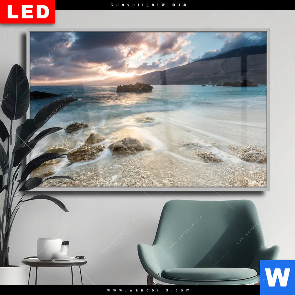 Wechselmotiv Acrylglas Canvalight® DIA | Meeresrauschen bei Sonnenuntergang | Querformat