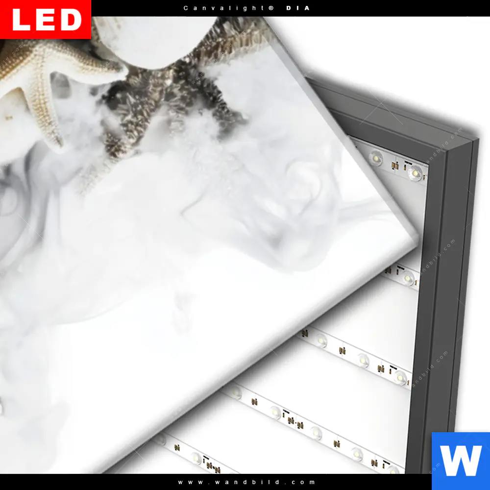 Wechselmotiv Acrylglas Canvalight® DIA | Muscheln und Seesterne | Schmal
