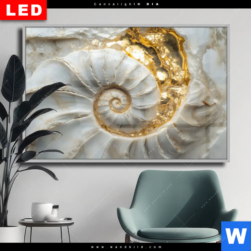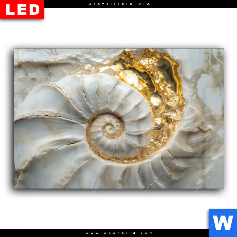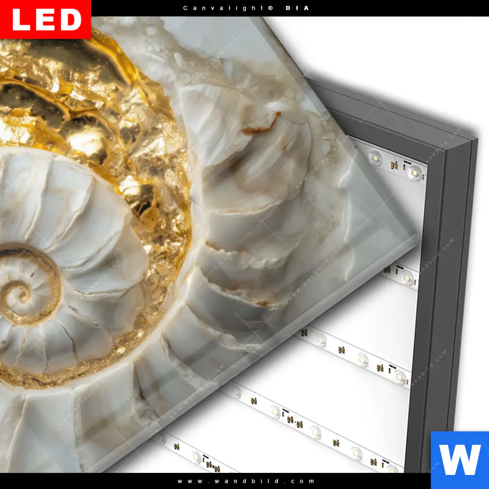 Wechselmotiv Acrylglas Canvalight® DIA | Muschelspirale mit Gold | Querformat