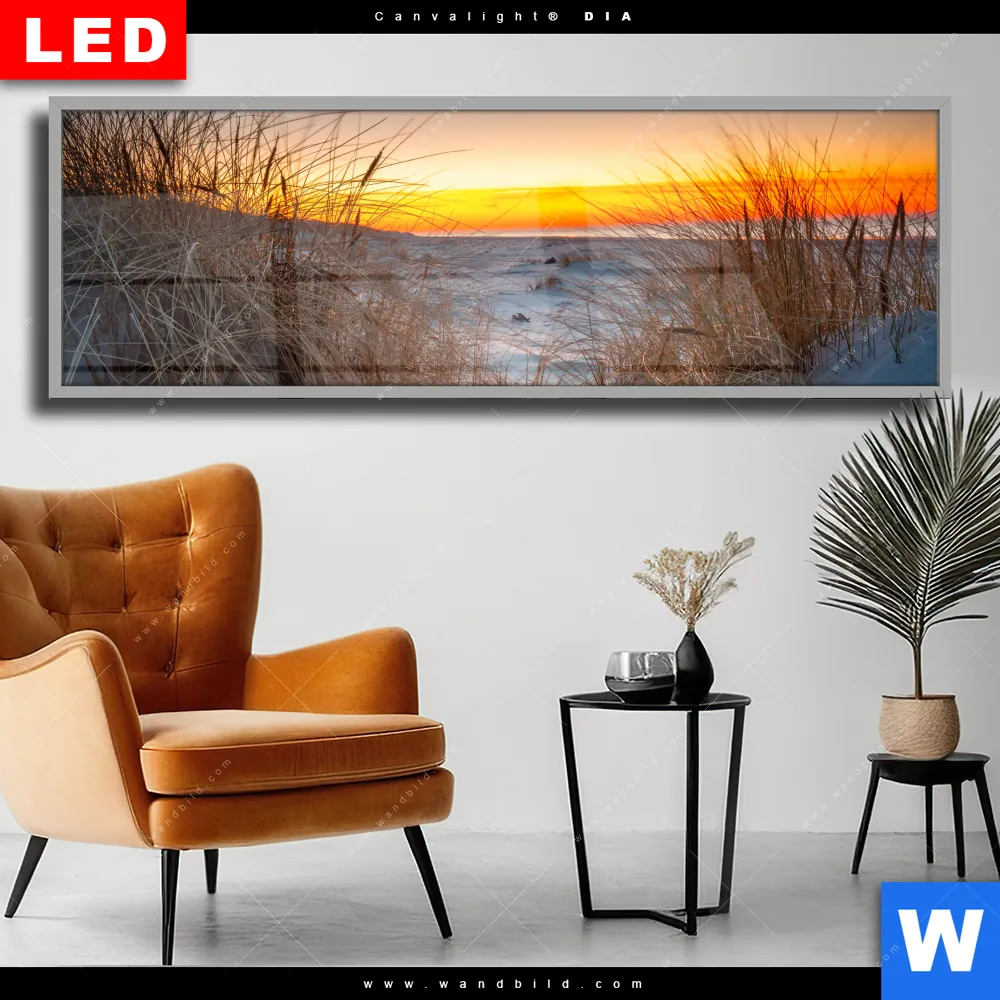 Wechselmotiv Acrylglas Canvalight® DIA | Ostseestrand bei Sonnenuntergang | Panorama