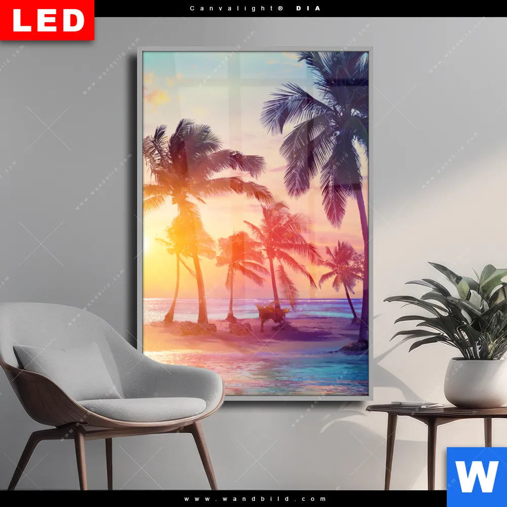 Wechselmotiv Acrylglas Canvalight® DIA | Palmen bei Sonnenuntergang | Hochformat