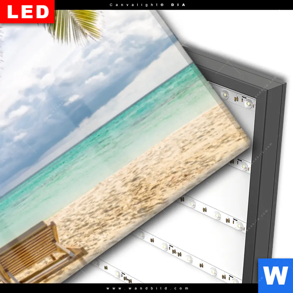 Wechselmotiv Acrylglas Canvalight® DIA | Paradies unter Palmen | Panorama