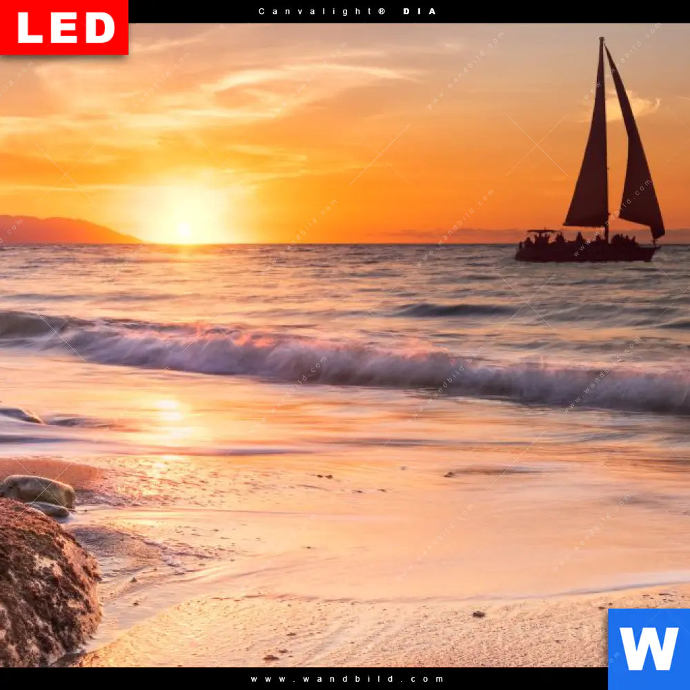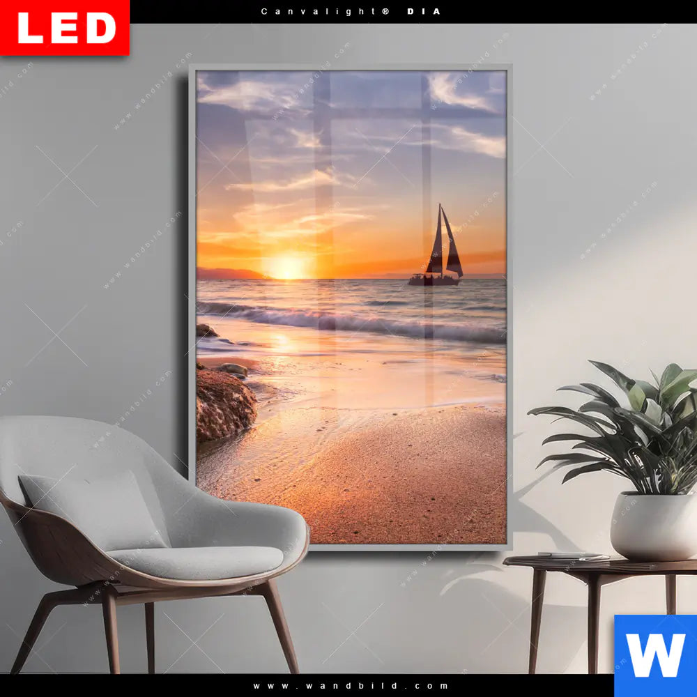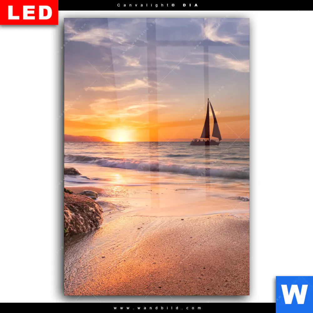Wechselmotiv Acrylglas Canvalight® DIA | Segelboot im Sonnenuntergang | Hochformat