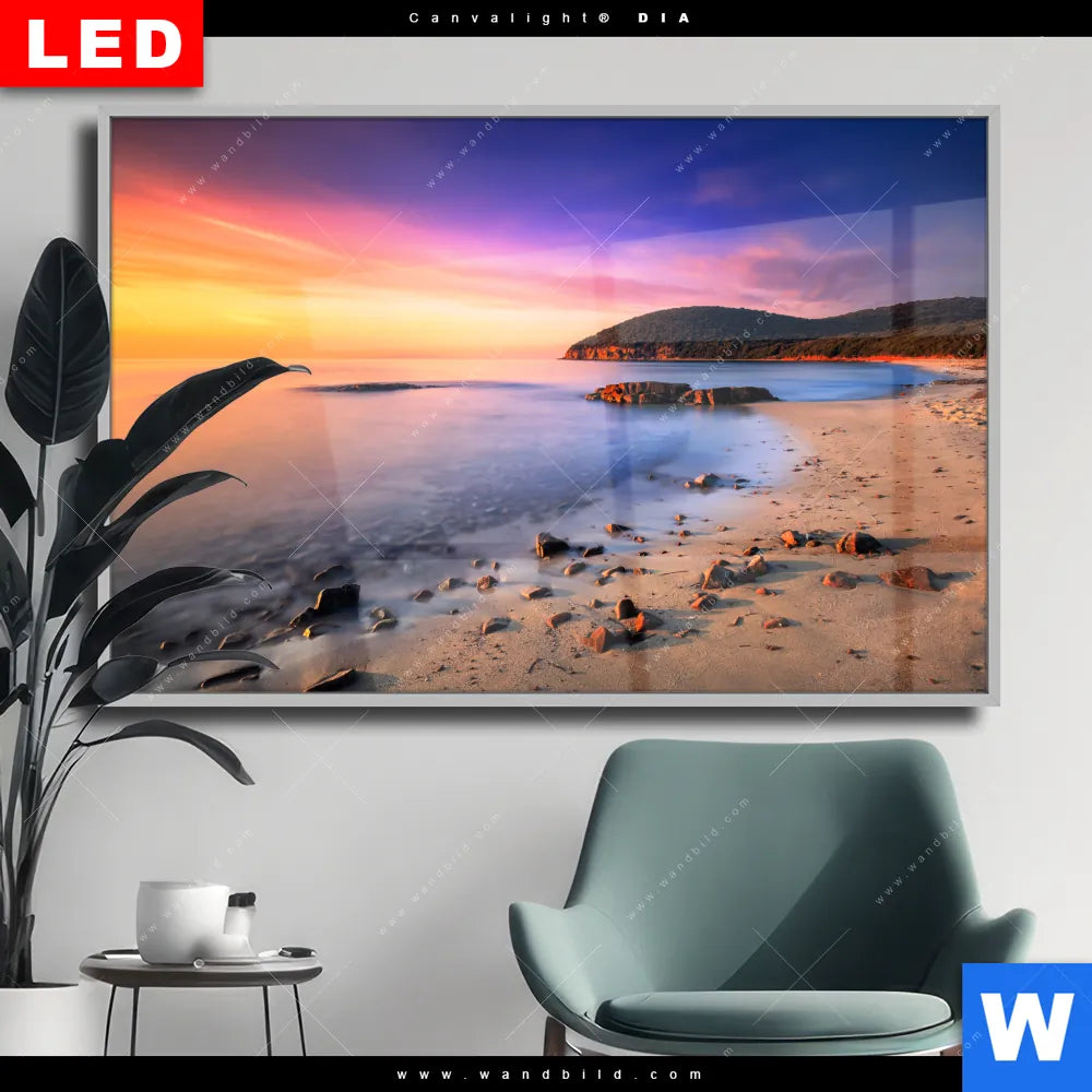 Wechselmotiv Acrylglas Canvalight® DIA | Sonnenuntergang in Bucht | Querformat