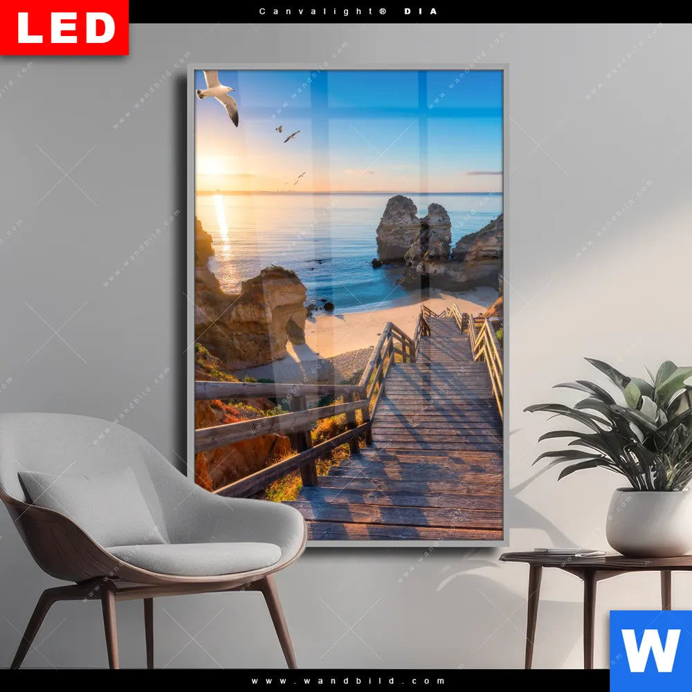 Wechselmotiv Acrylglas Canvalight® DIA | Steg zum Meer | Hochformat