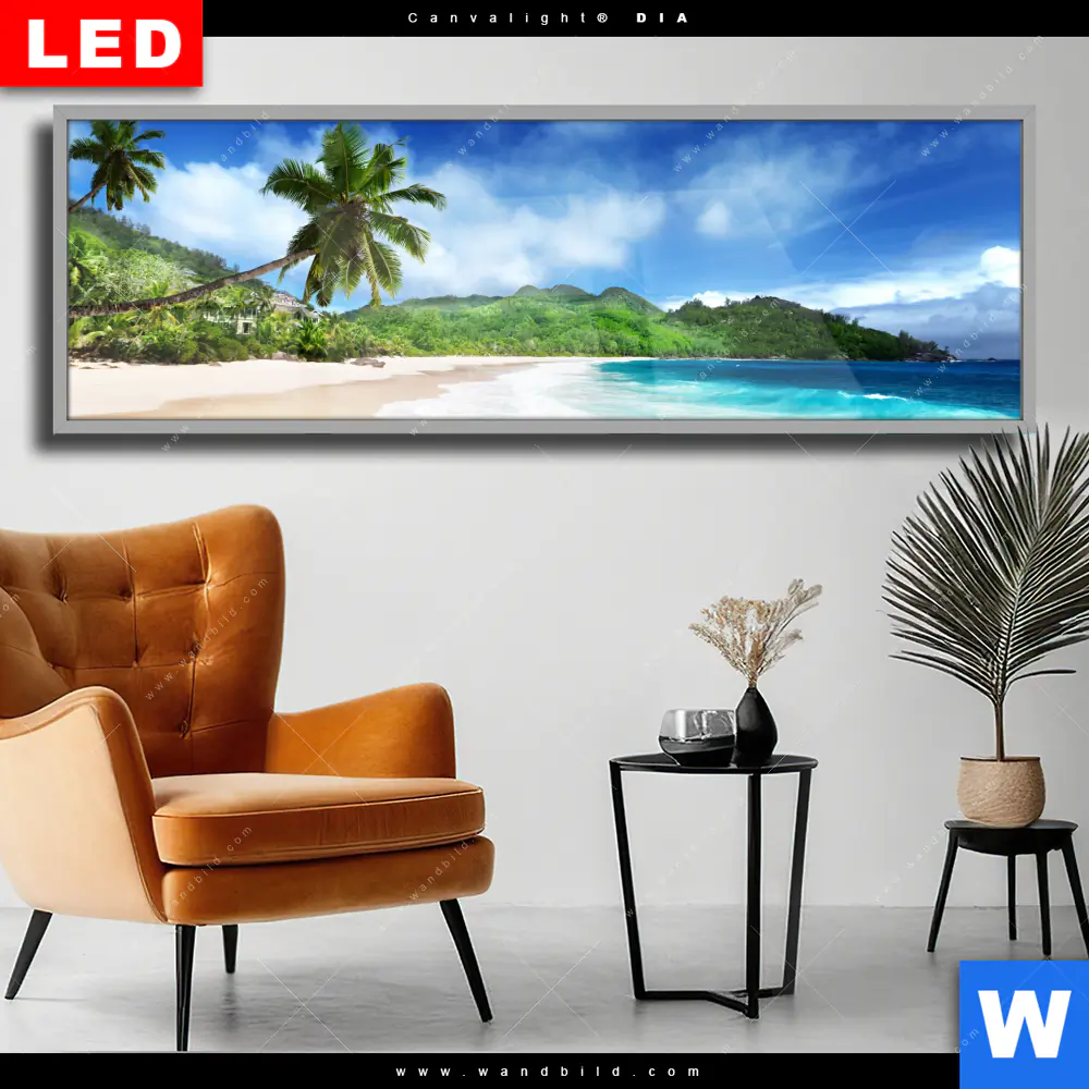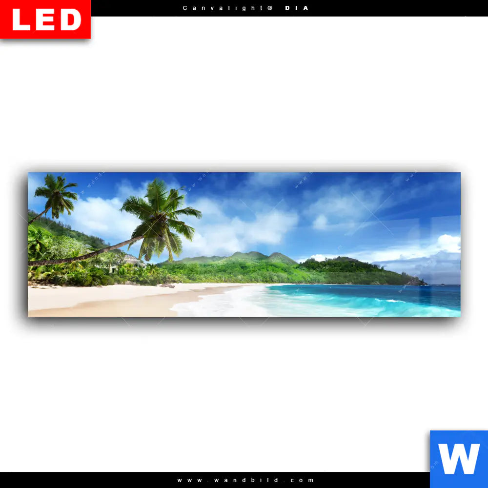 Wechselmotiv Acrylglas Canvalight® DIA | Traumstrand unter Palmen | Panorama