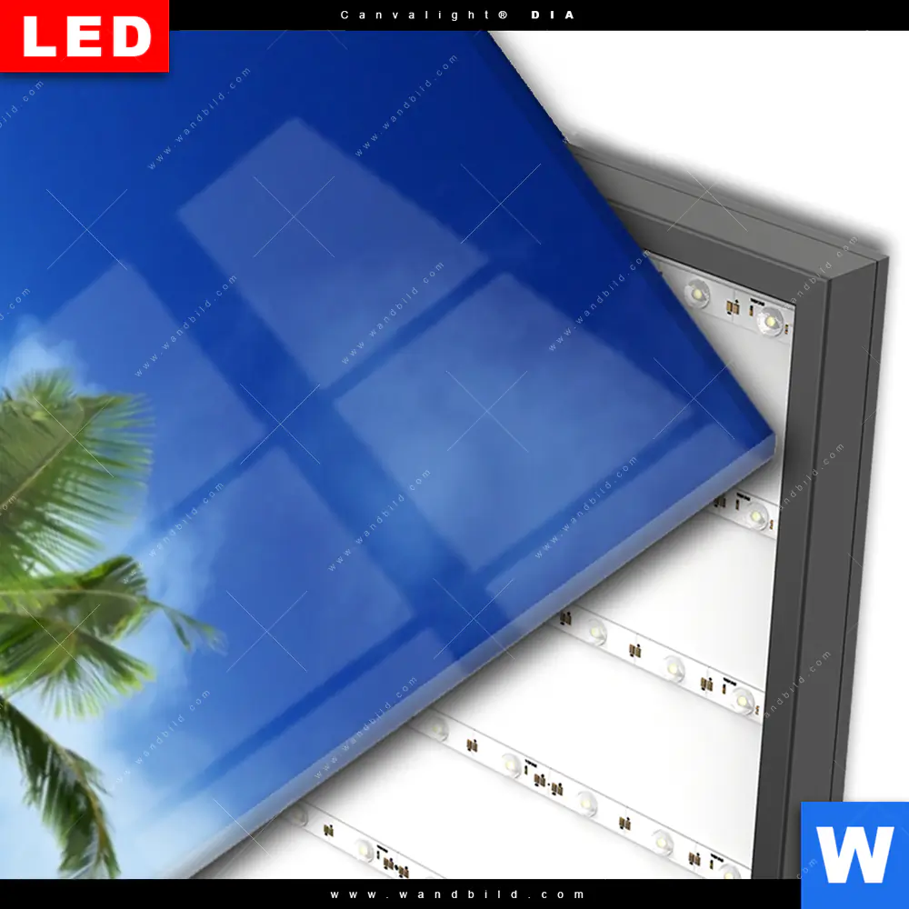 BEACHTE: Du solltest bereits ein Canvalight® DIA Leuchtbild mit austauschbarem Acrylglas-Motiv besitzen! Im Lieferumfang ist nur ein Wechsel-Acrylglas-Druck ohne Leuchtrahmen enthalten. Der Abdeckwinkel im Frontbereich des LED Bildes deckt umlaufend ca. 19 mm des Motives ab. Bei eigenen Motiven bitte darauf achten, wichtige Elemente in ausreichender Entfernung vom Rand zu platzieren, damit diese nicht verdeckt werden.