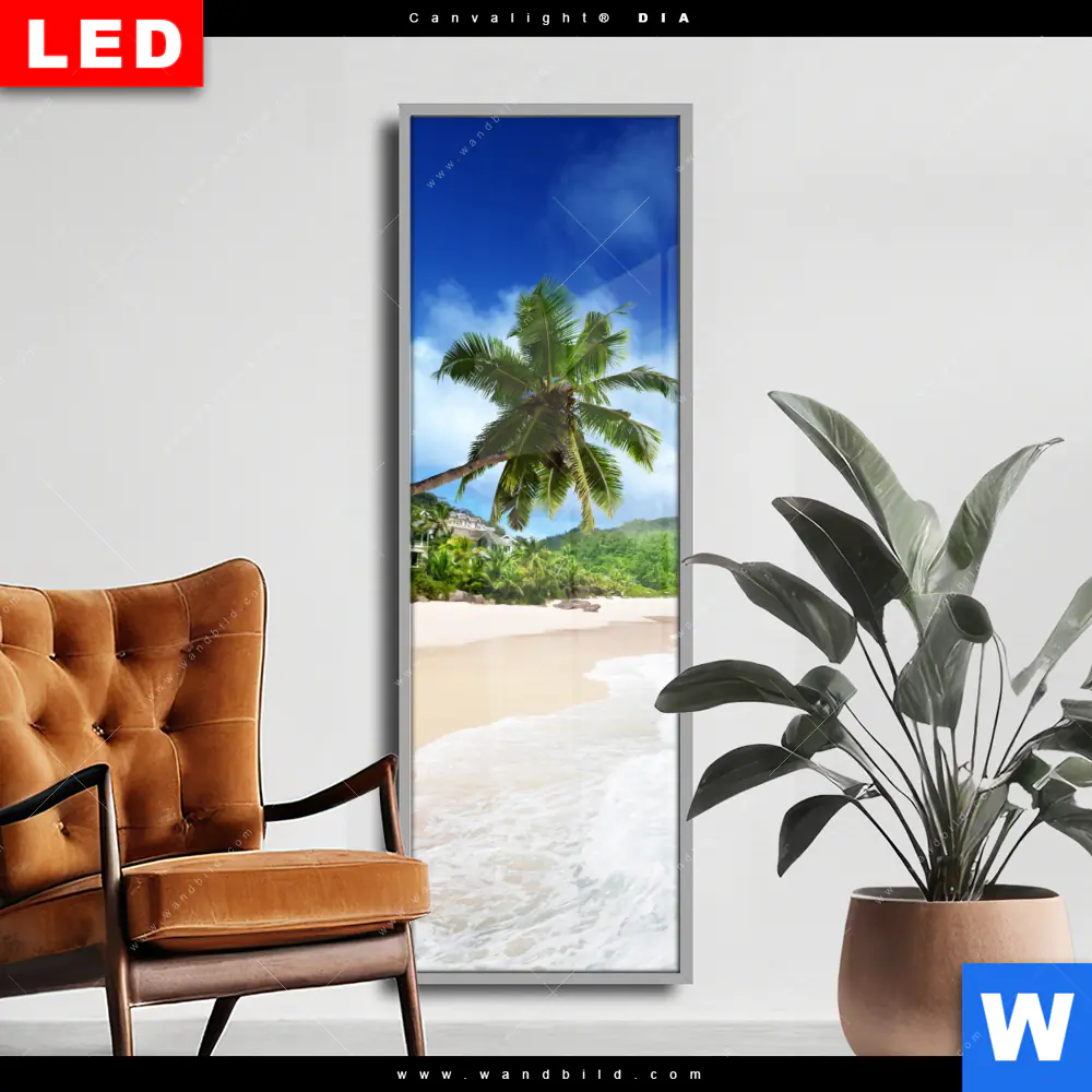 Wechselmotiv Acrylglas Canvalight® DIA | Traumstrand unter Palmen | Schmal