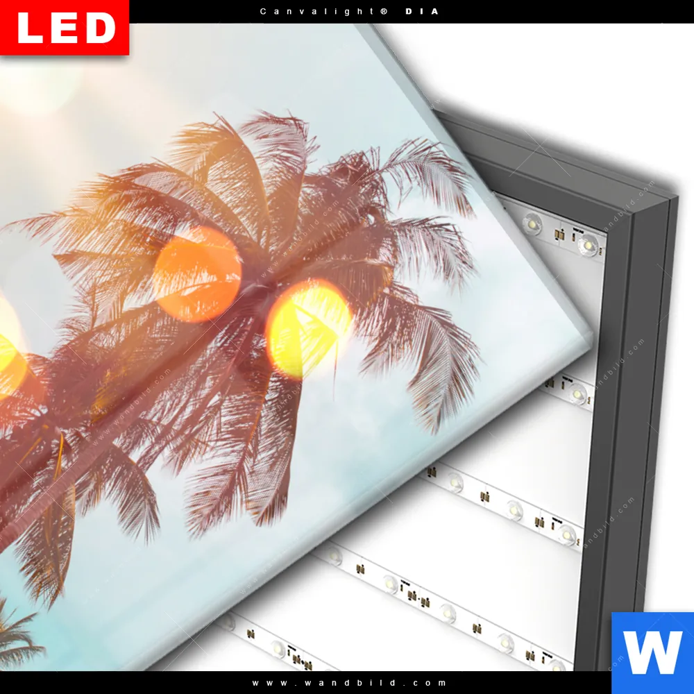 Wechselmotiv Acrylglas Canvalight® DIA | Tropische Palmen | Hochformat