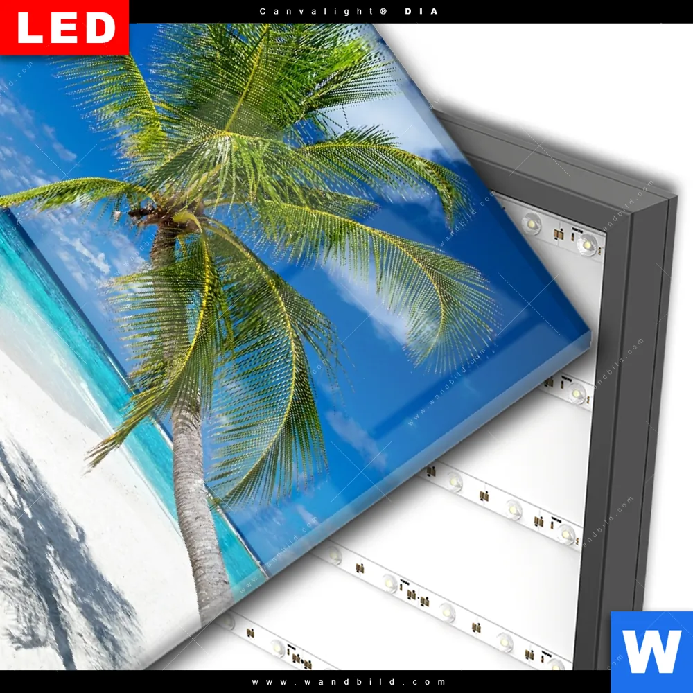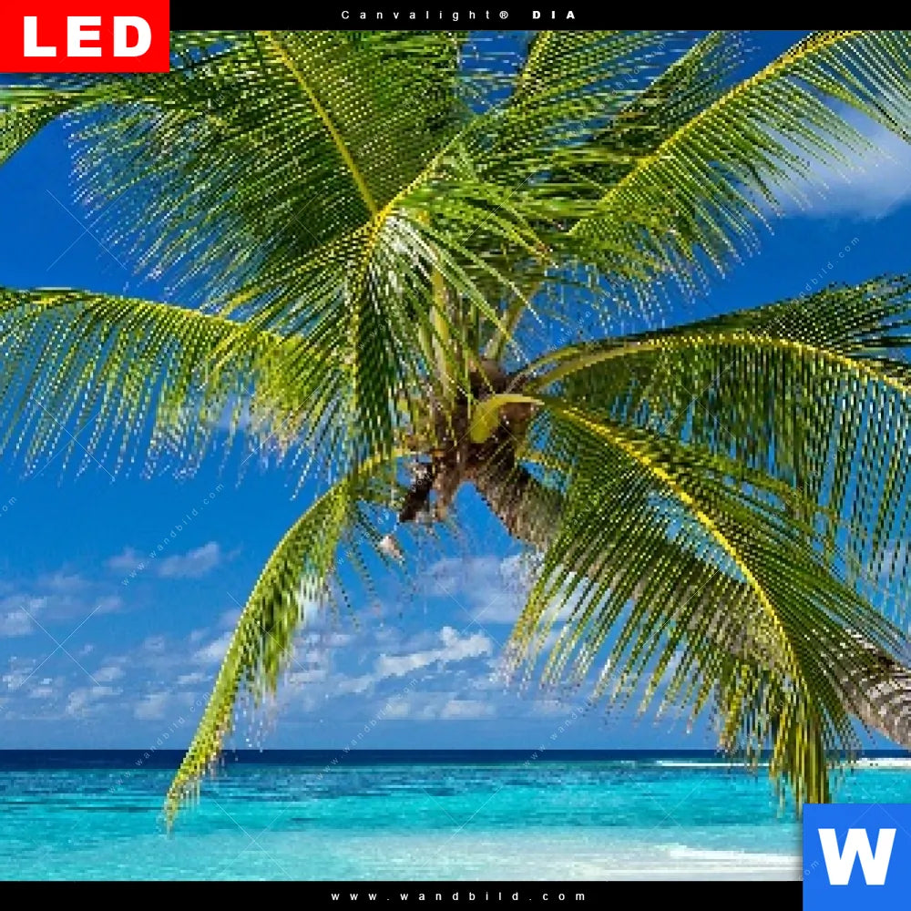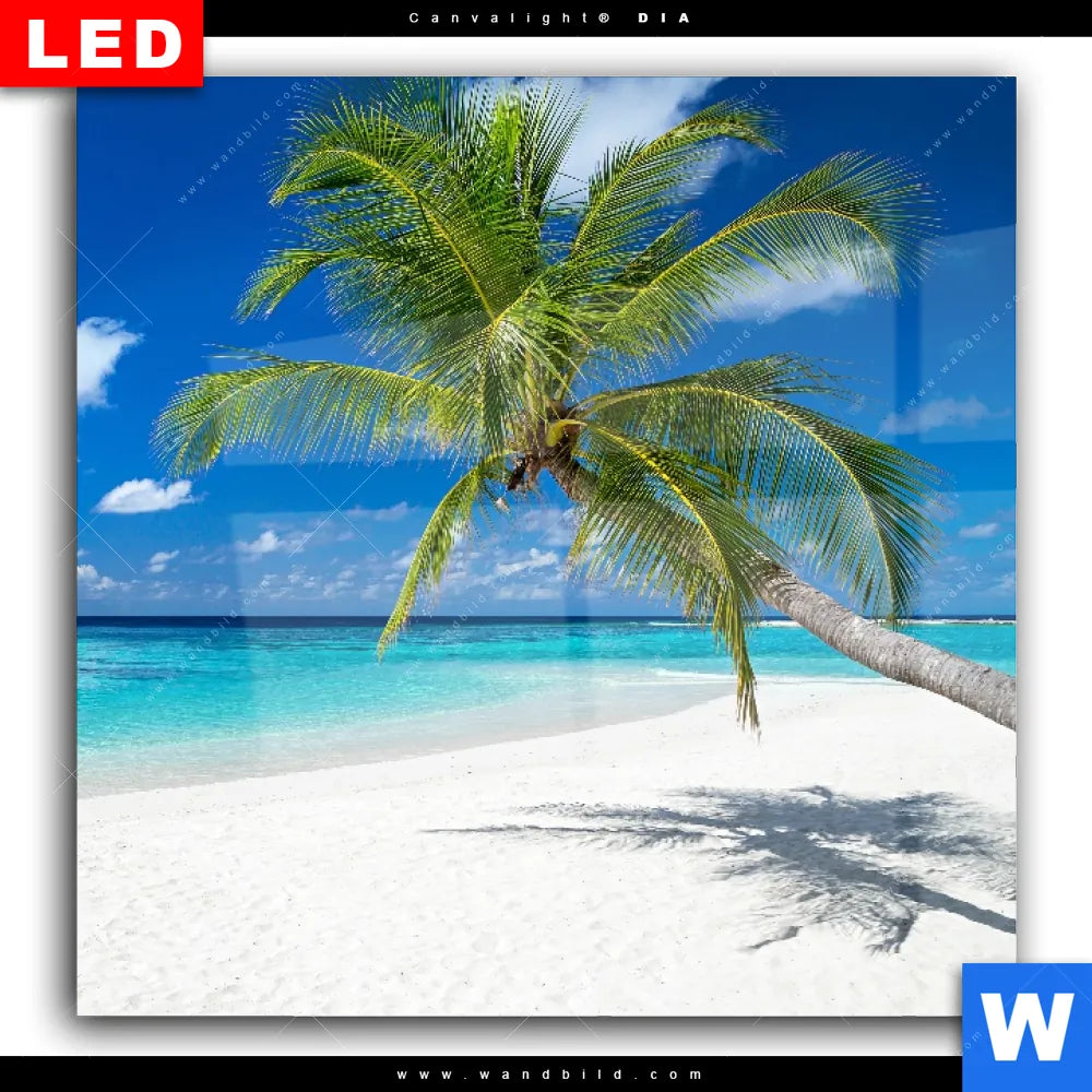 Wechselmotiv Acrylglas Canvalight® DIA | Weißer Strand & Kokospalme | Quadrat