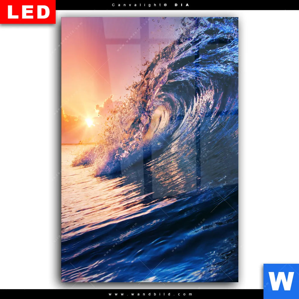 Wechselmotiv Acrylglas Canvalight® DIA | Welle im Sonnenuntergang | Hochformat