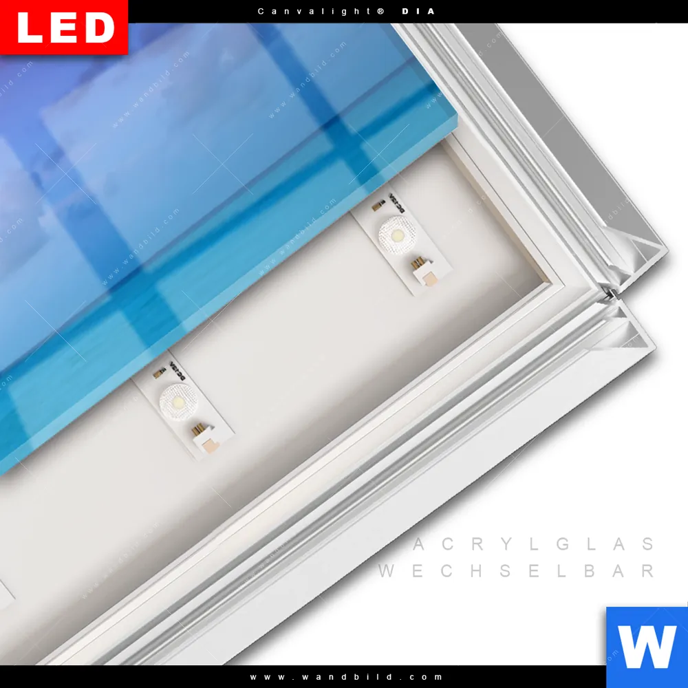 LED-Glasbild mit austauschbarem Acrylglas-Druck (Wechselbild)