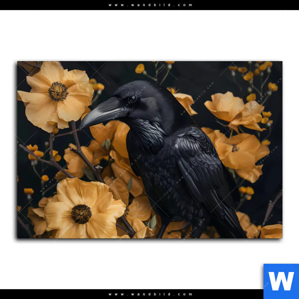 Leinwandbild | Naturbild - Rabe & Blüten | Querformat